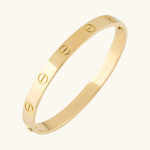 Den er fremstillet af kirurgisk rustfrit stål og belagt med 18 karat guld, og den er designet til at bevare sin glans for evigt.