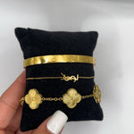 FLORENCE Sættet samler tre ikoniske armbånd – fra de raffinerede kløverdetaljer til den moderne bangle med skrue-mønster. Denne harmoniske kombination udstråler luksus og elegance og lader hver håndled skille sig ud med tidløs charme. Vandafvisende, farveægte og perfekt til daglig brug eller ved særlige lejligheder.