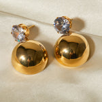 Gretta Guldøreringe udstråler poleret glans. Deres skinnende 18k guldkuppelform giver en glat overflade, der fanger lyset smukt, og en enkelt diamant simulant tilføjer et strejf af subtil glans. Perfekte til særlige lejligheder og daglig brug.