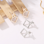 De elegante øreringe tilbyder et moderne og geometrisk udseende. I form af en rhombus tilføjer disse øreringe et stilfuldt og raffineret touch til ethvert look. Perfekte til daglig brug eller en aften ude.