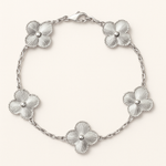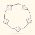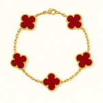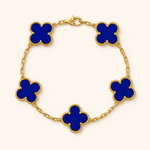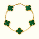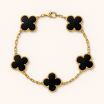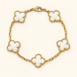 KLAVER Armbåndet i er et elegant og raffineret tilbehør med et charmerende blomsterdesign, der både udstråler luksus og legesyge. Designet med detaljerede blomster og en gylden kæde gør det til et alsidigt valg til enhver lejlighed. Fremstillet af etisk produceret rustfrit stål med 18k guld, er dette armbånd både holdbart og stilfuldt. Dette armbånd leveres med et justerbart forlængerkæde for en perfekt pasform.