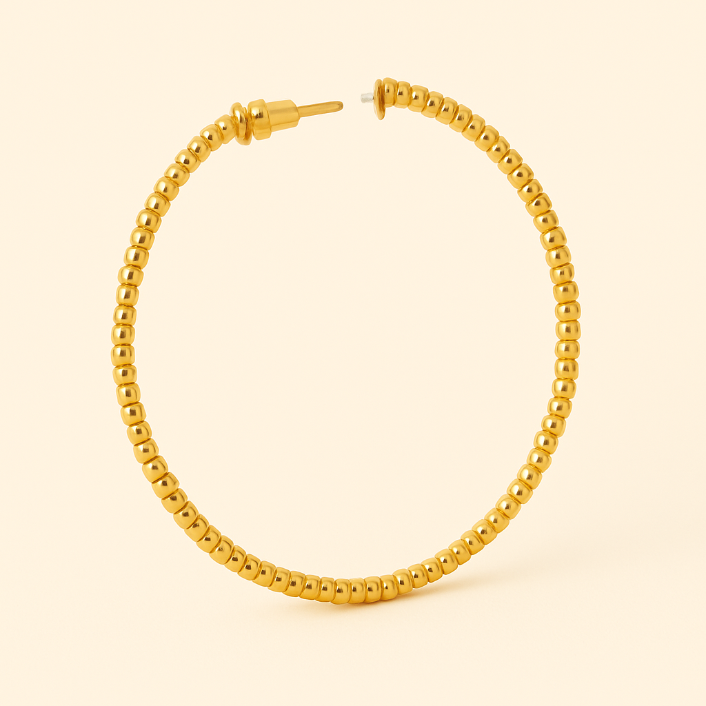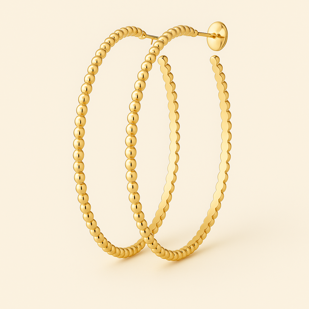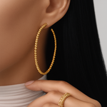 Mariella øreringene er elegante gyldne hoops med en raffineret kuglestruktur. Det minimalistiske design udstråler luksus, mens den lette bærekomfort sikrer, at du kan have dem på hele dagen uden problemer. Perfekte til både hverdagslooks og særlige anledninger!