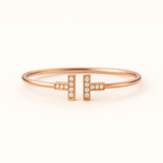 TESS T Armbåndet er et moderne og raffineret armbånd med et ikonisk design. Det slanke, åbne design med den karakteristiske T-form giver dette armbånd et elegant og tidløst udseende. Kombinationen af skinnende 18k guld og subtilt indlagte zirkoniaer skaber et luksuriøst og stilfuldt look. Perfekt til at bære alene eller kombinere med andre armbånd for et lagdelt effekt.